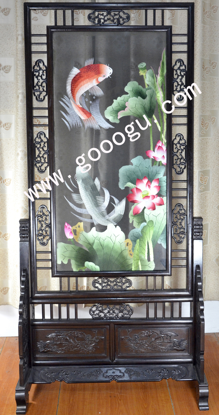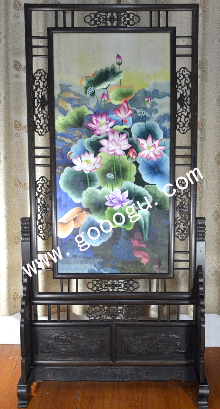 蘇繡精品屏風(fēng) 滿繡隔斷 純手工精品 荷花 中式屏風(fēng)